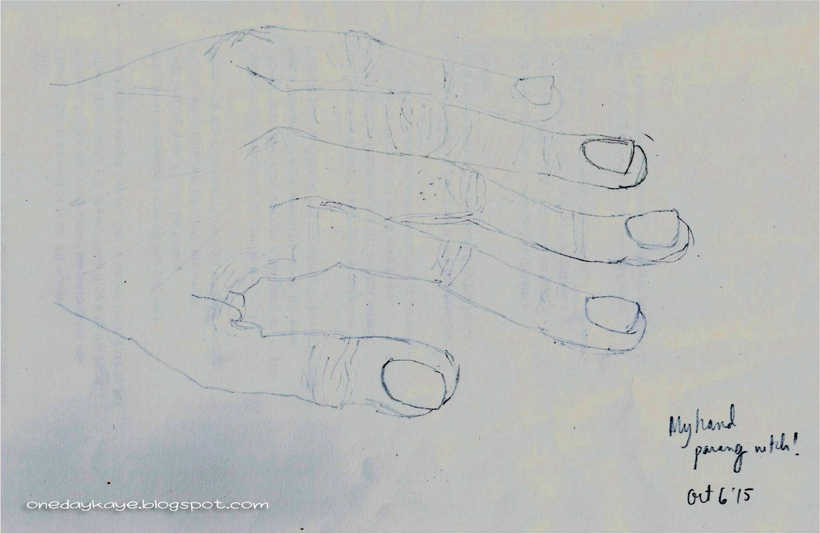 After a short introduction on the basis of the teaching technique (which read like a research journal or some other academic paper,) it went on to listing the materials needed for the drawing exercises. The first exercise, however, only needed a pencil and paper. I had to draw a 1) self-portrait, 2) a person from memory, and 3) my hand, to serve as a point of comparison when tracking my progress (a ka, “before” drawings. Forgive the scans, I recycled lyric sheets from past productions.)